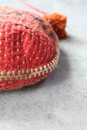 太めの糸でひと針ひと針丁寧に、刺し子でデザインが施されています。