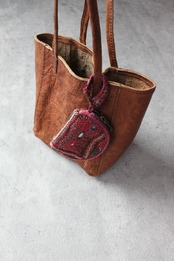 インド ラバリ族の手刺繍生地を、手のひらサイズの小物入れにしました。