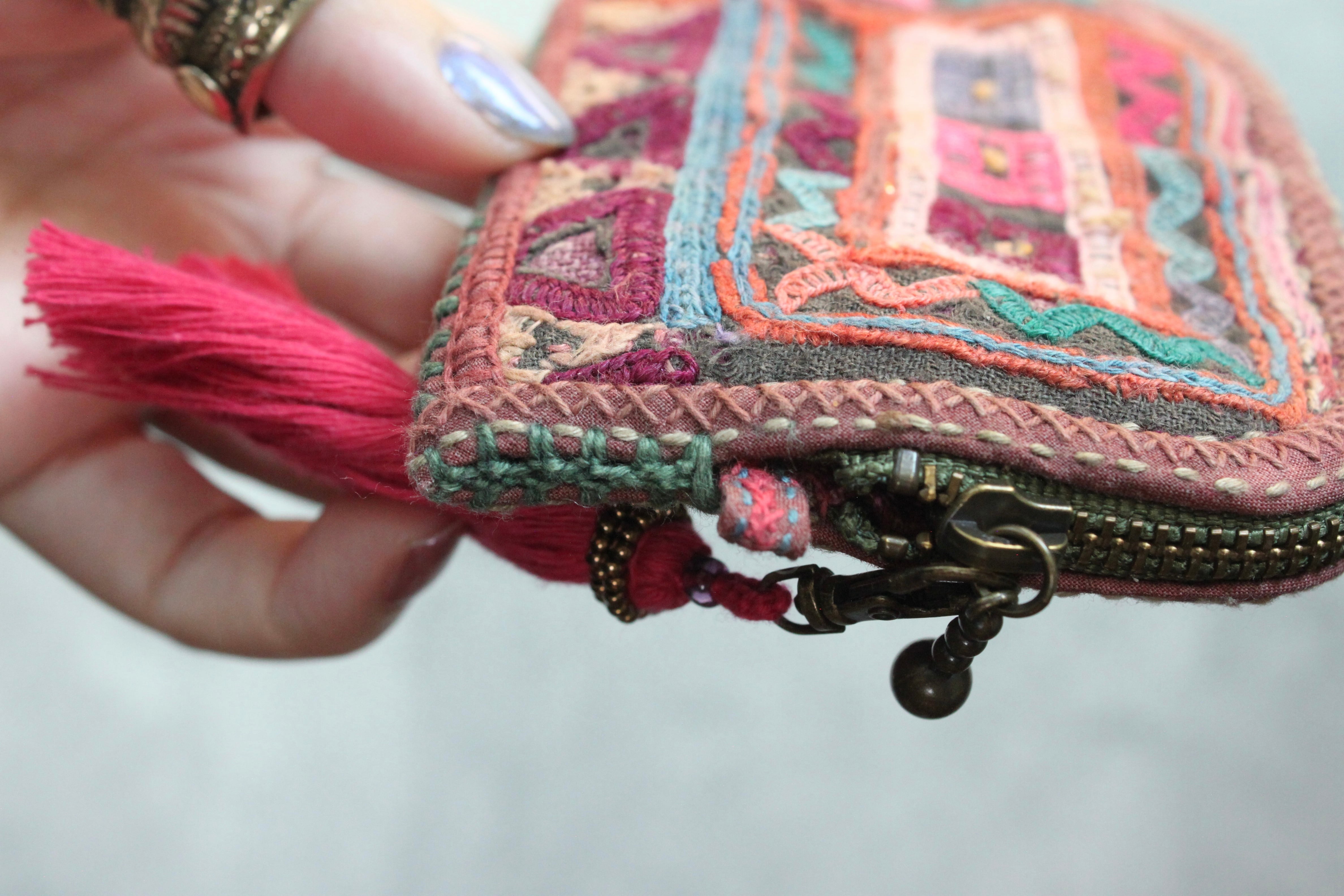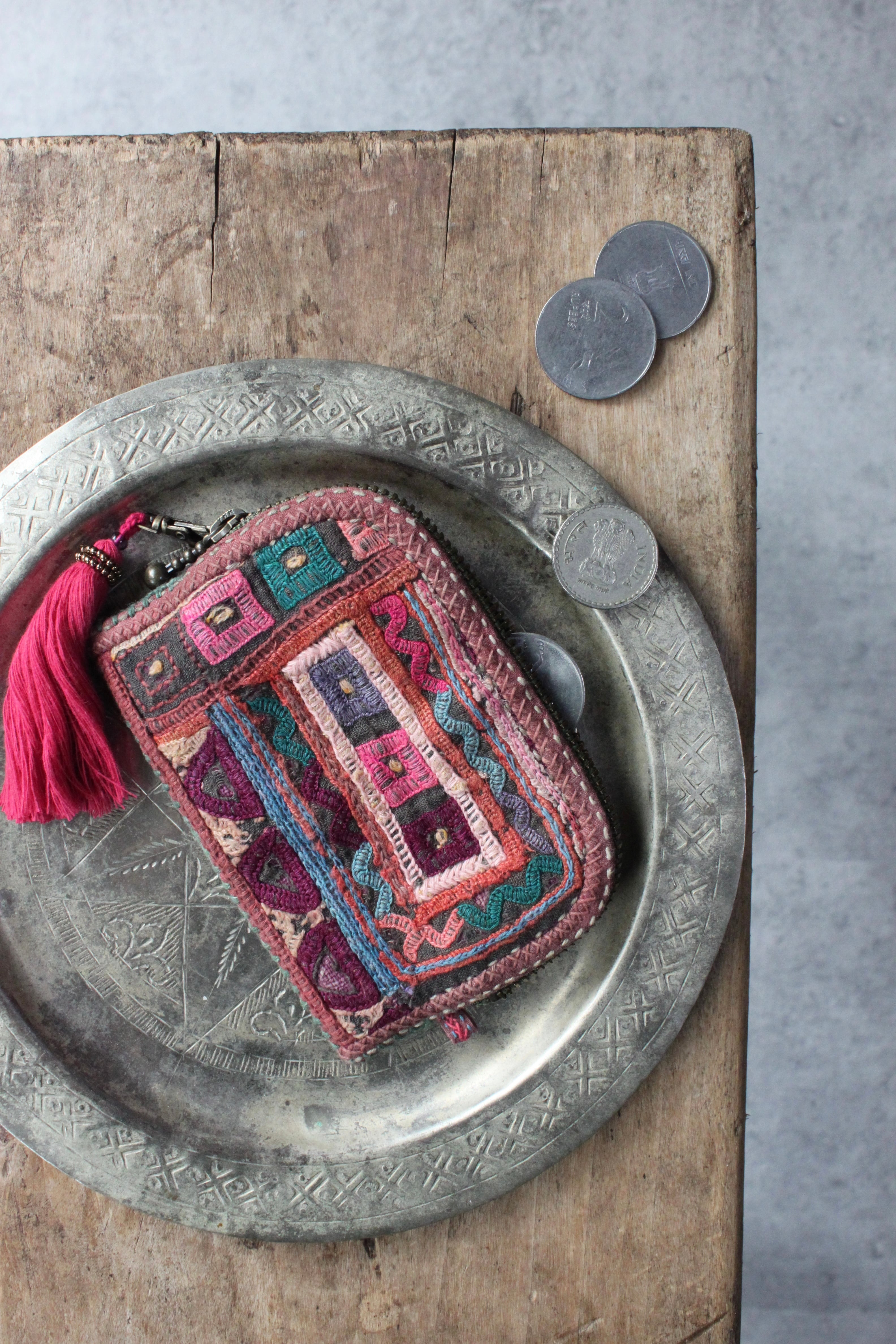 インドの少数民族による手刺繍生地を組み合わせて作ったカードケースです。