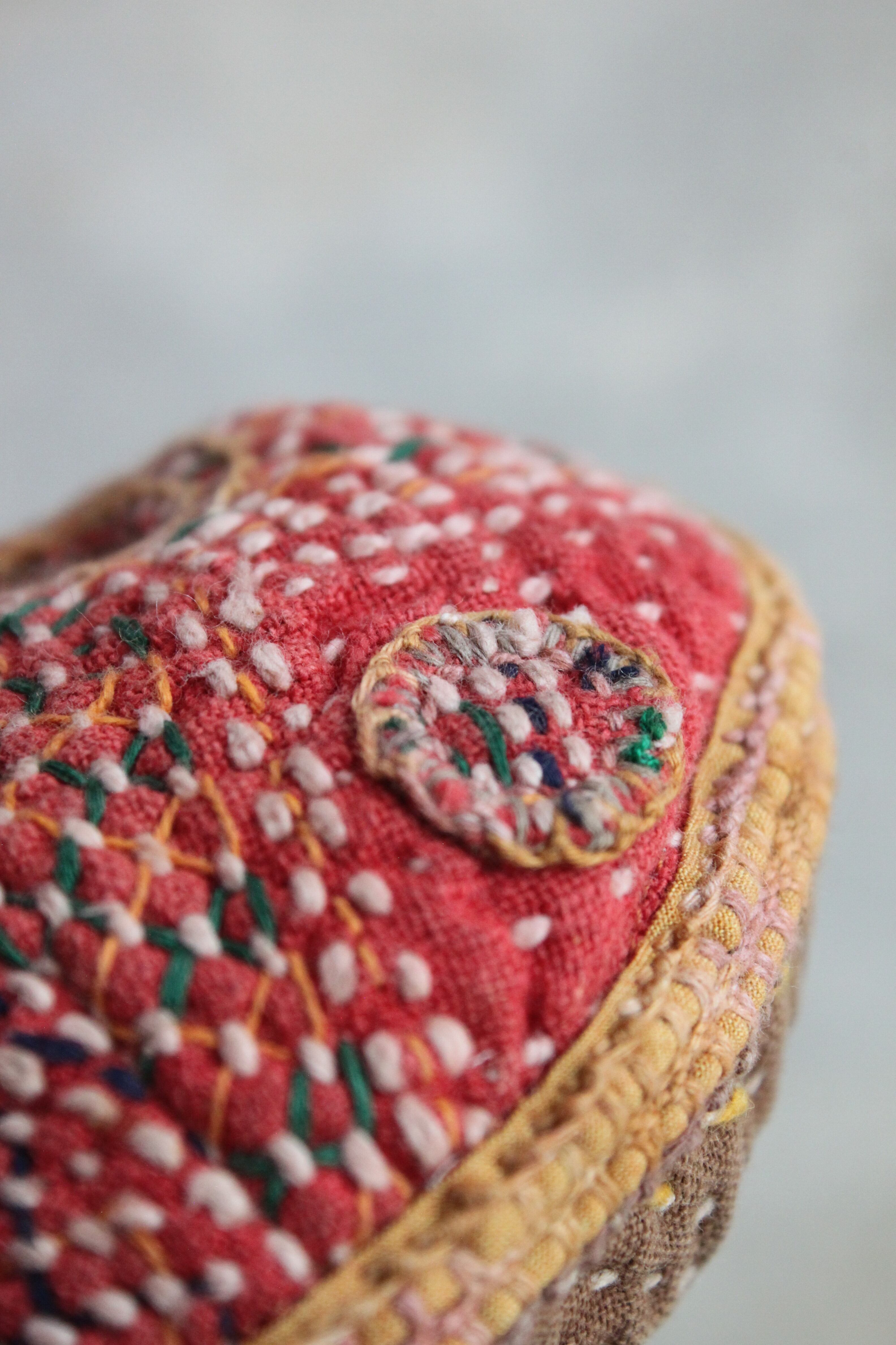 バンジャラ族の布は太めの糸でひと針ひと針丁寧に刺し子が施されています。