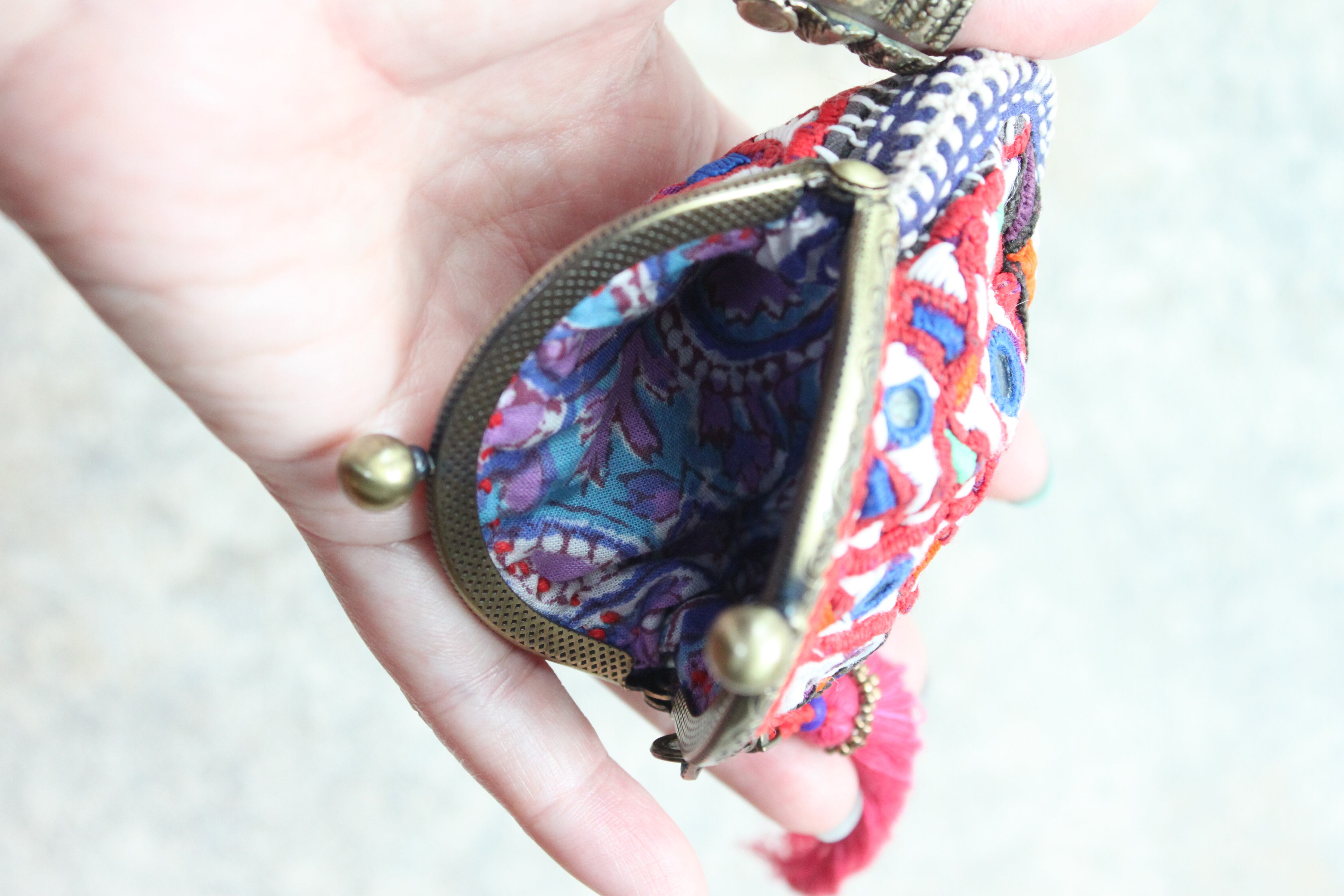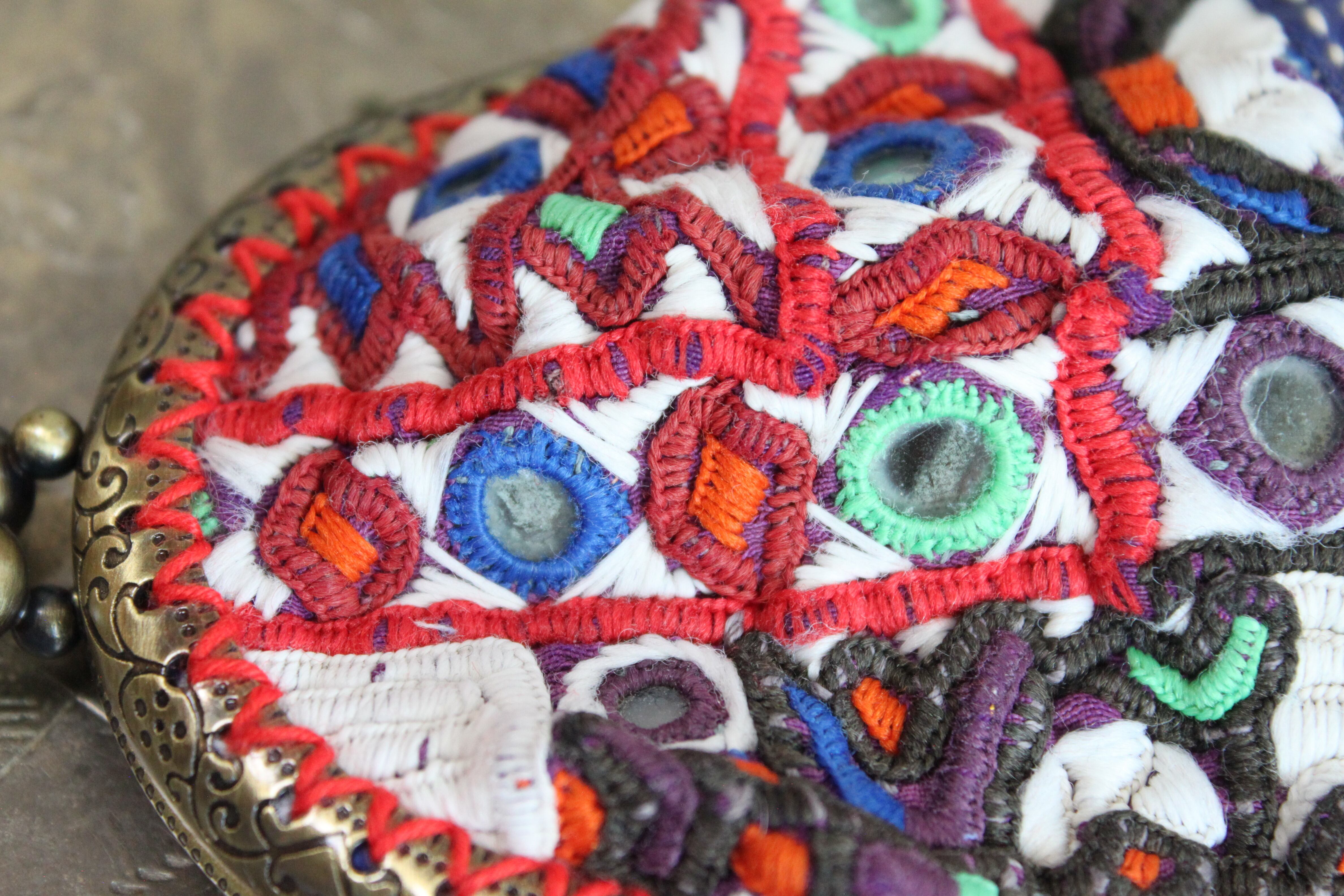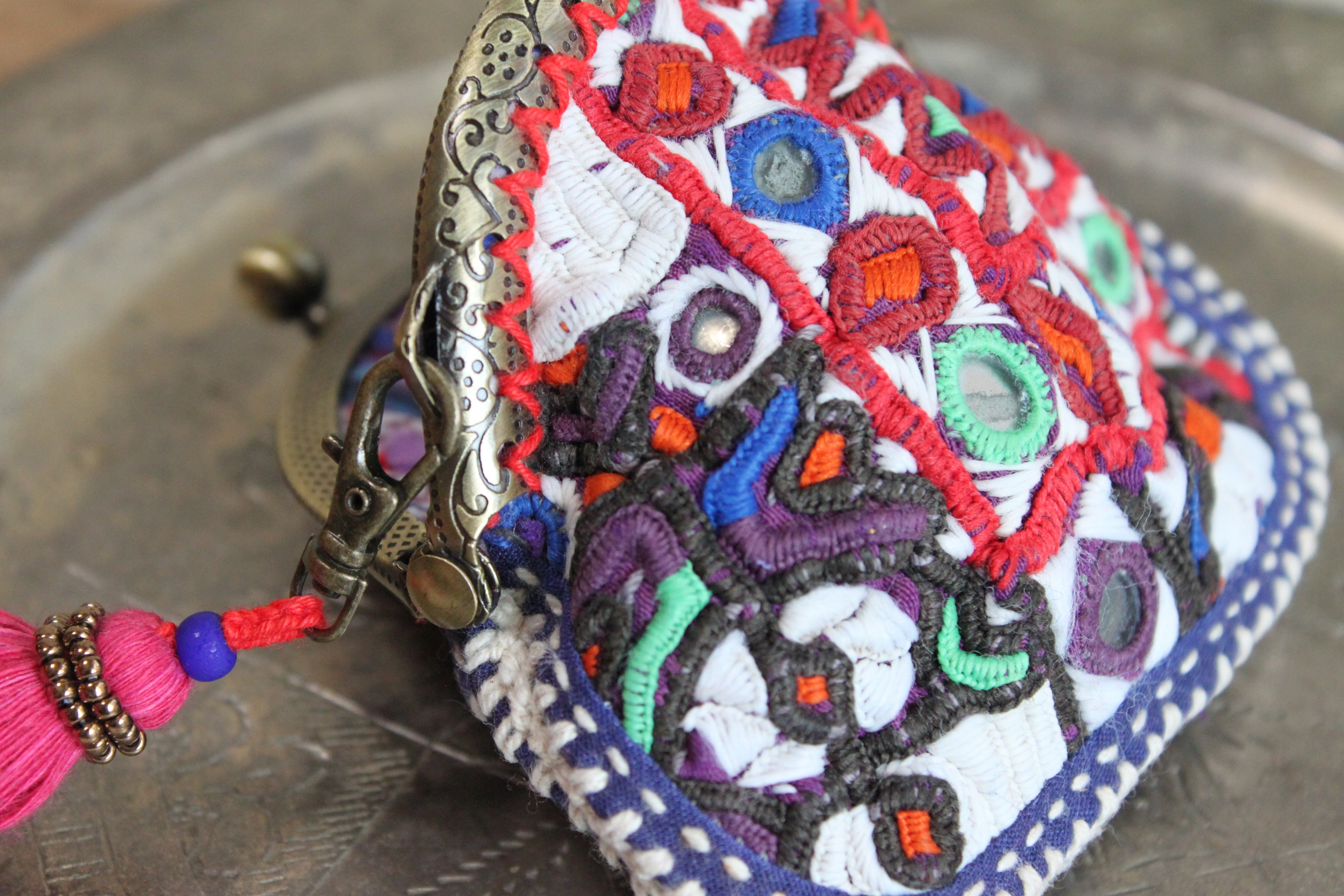 インド カッチ地方の民族衣装から作ったのがま口タイプの小物入れ。