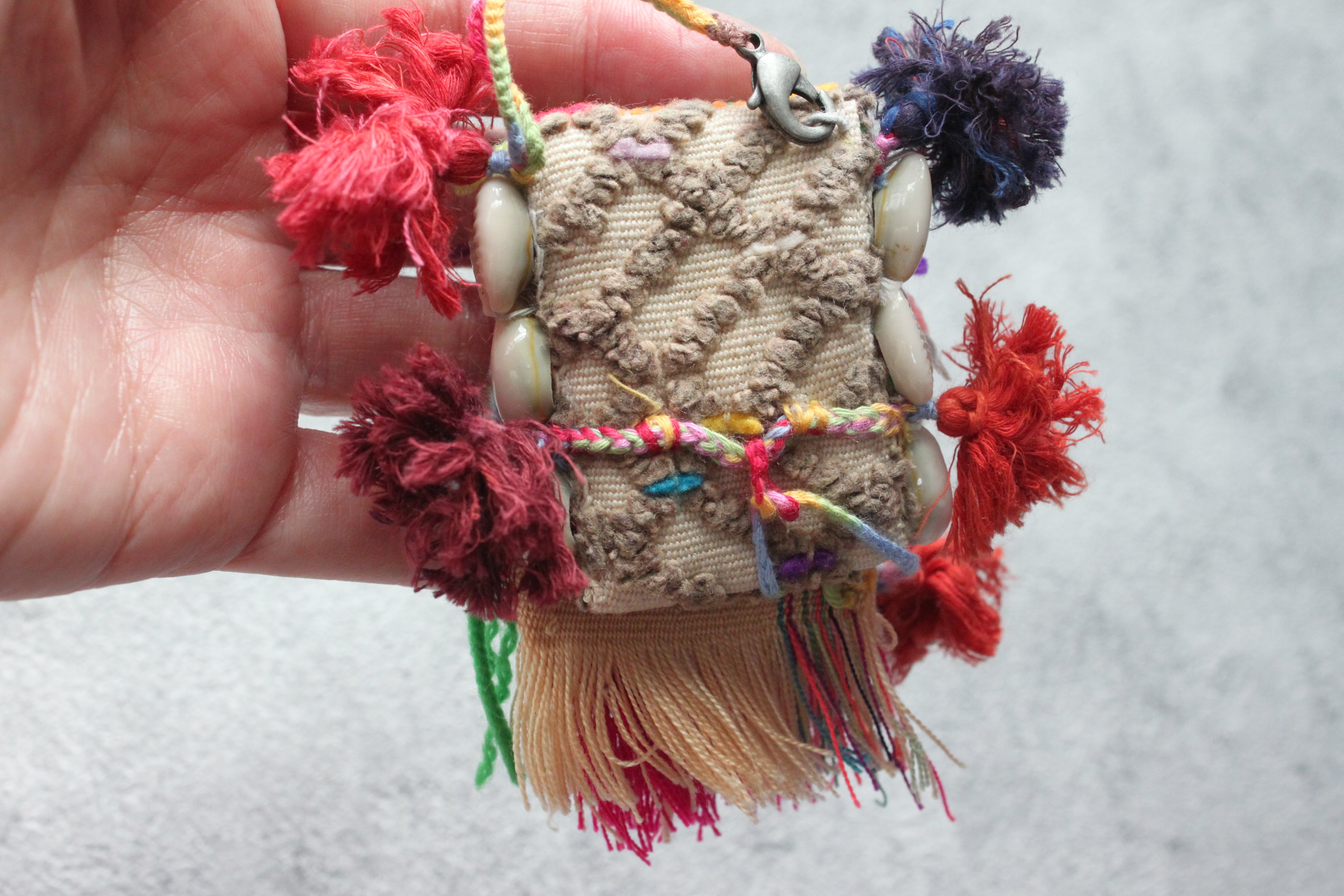 カラフルなフリンジが目を引くで個性的なデザインで、日常のアクセントにぴったりです。