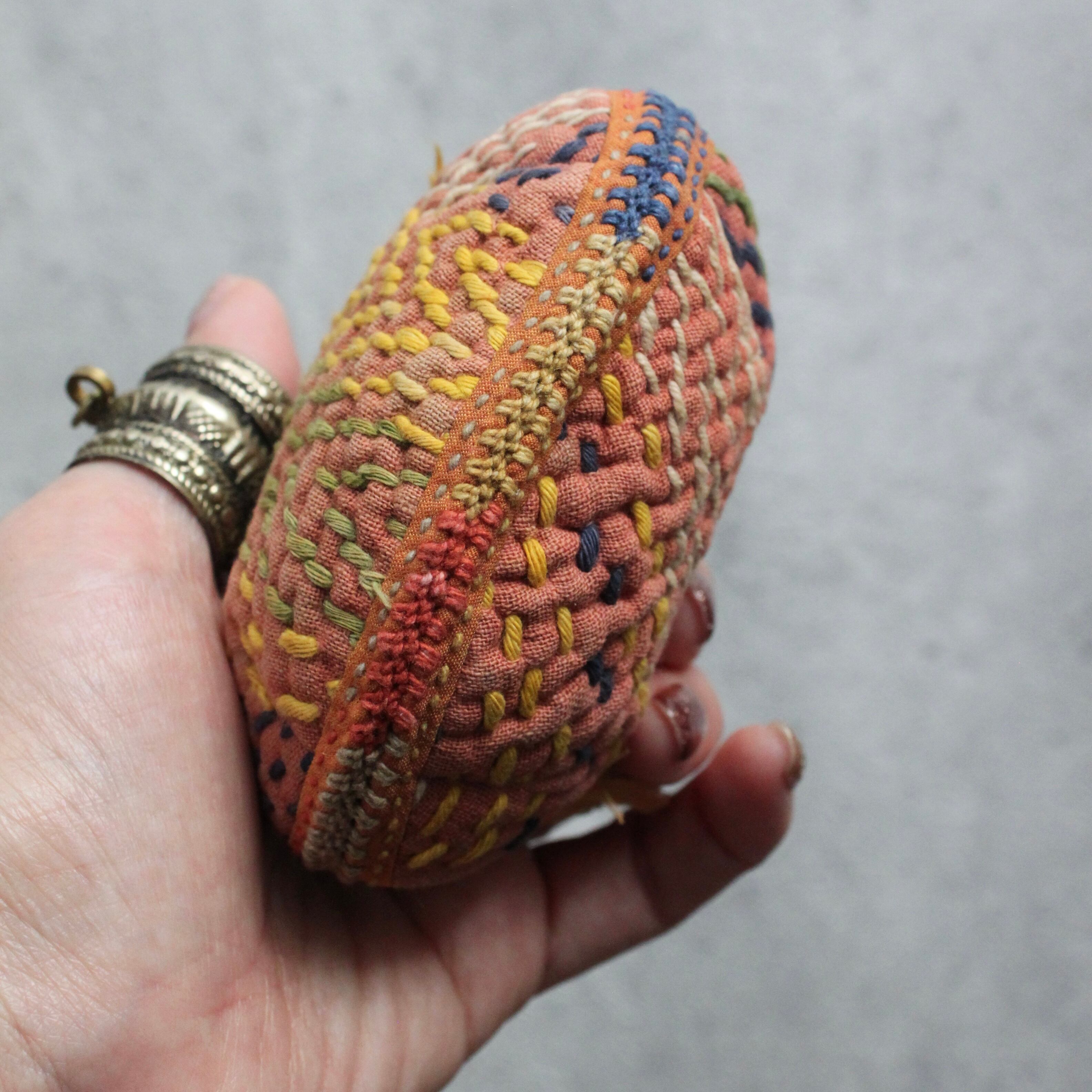 バンジャラ族の布は太めの糸で刺し子が施されていて
