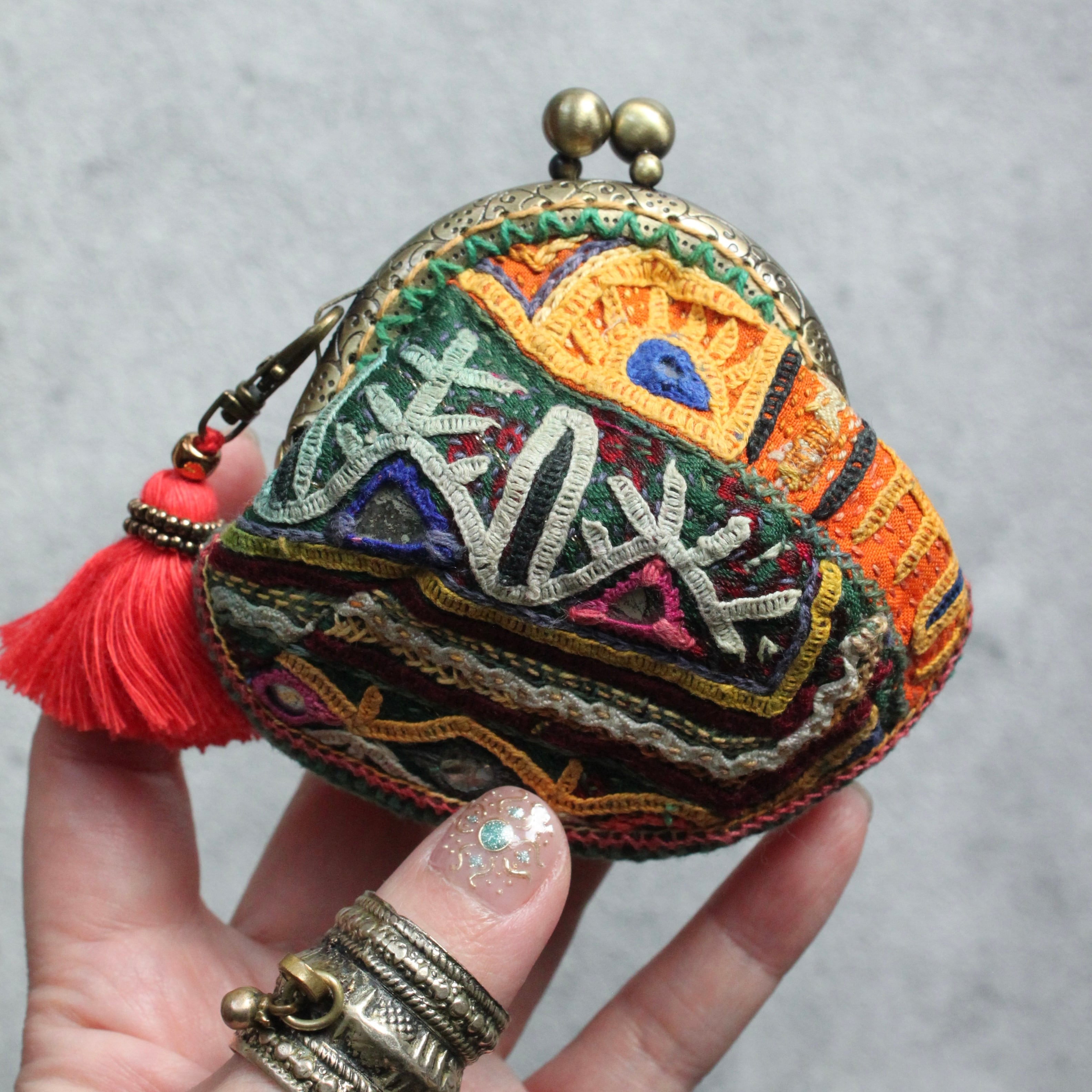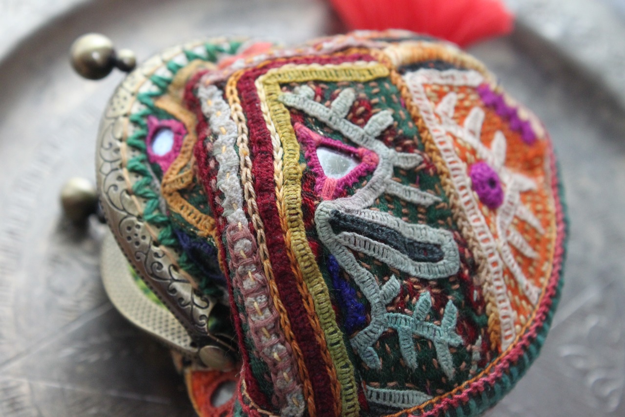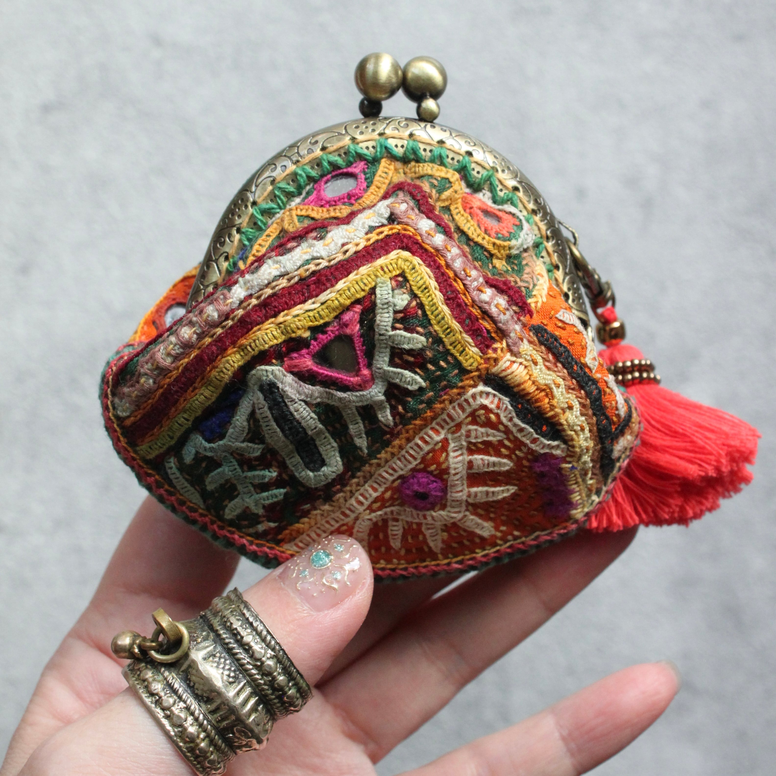 Indian embroidery coin purse/ラバリ刺繍のがま口
