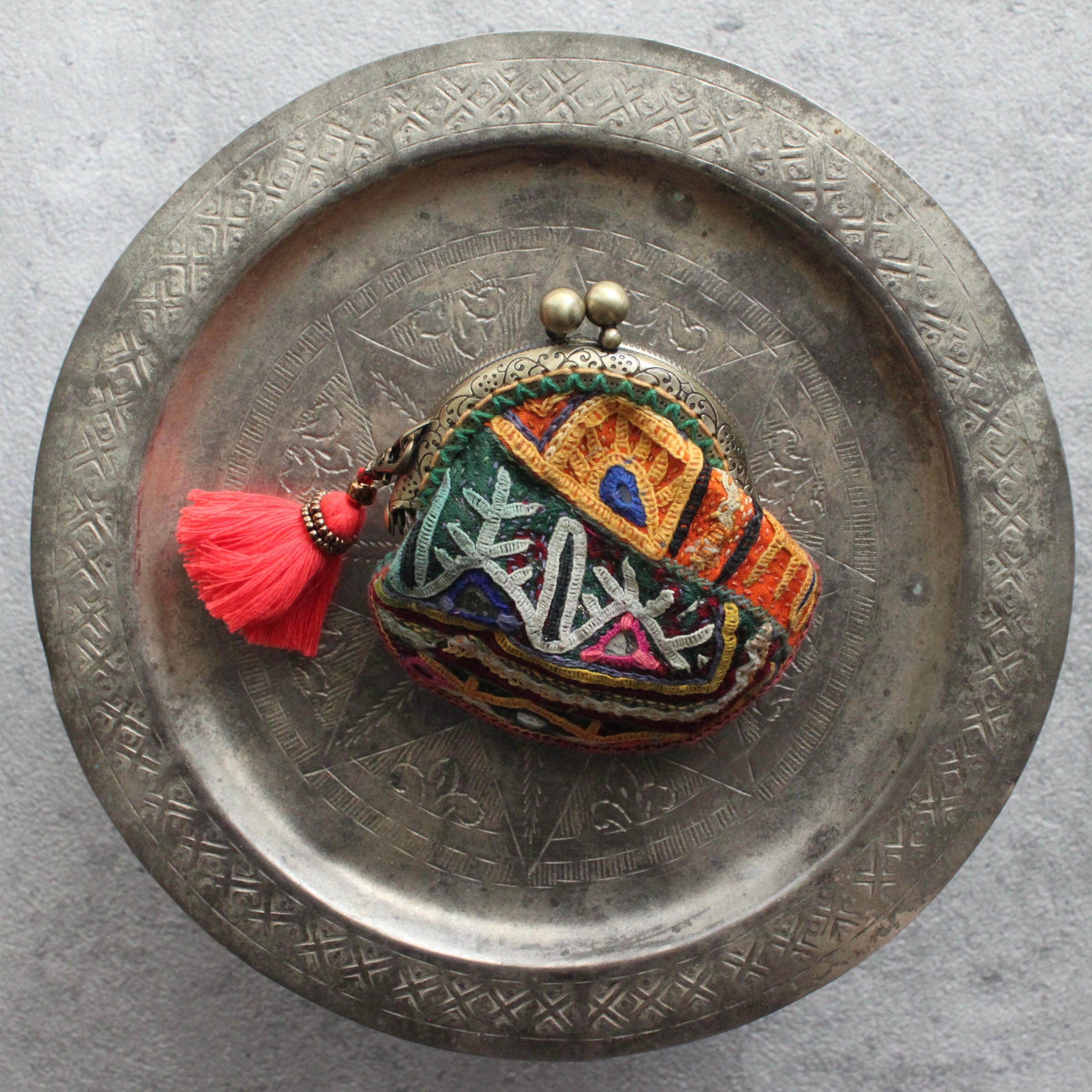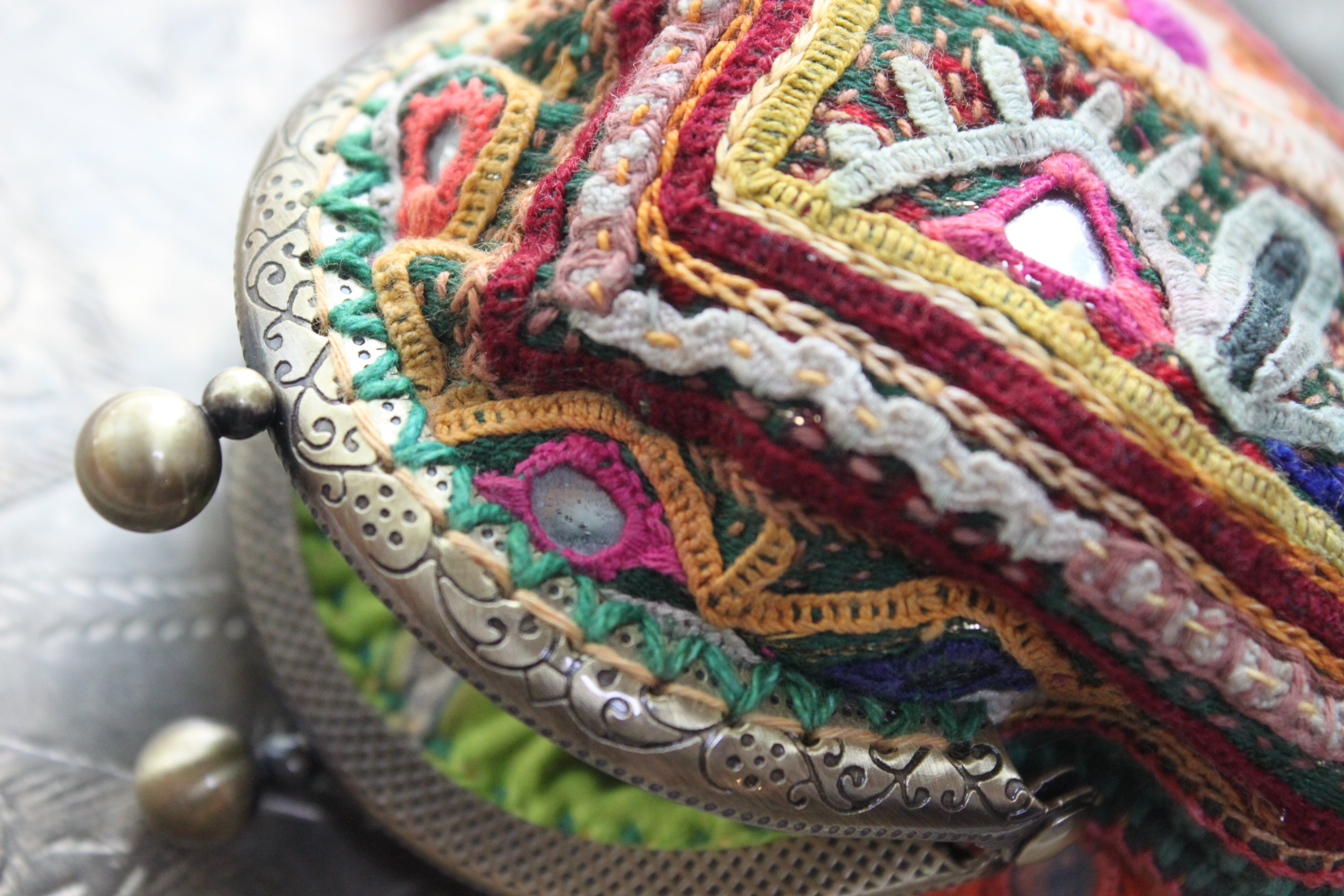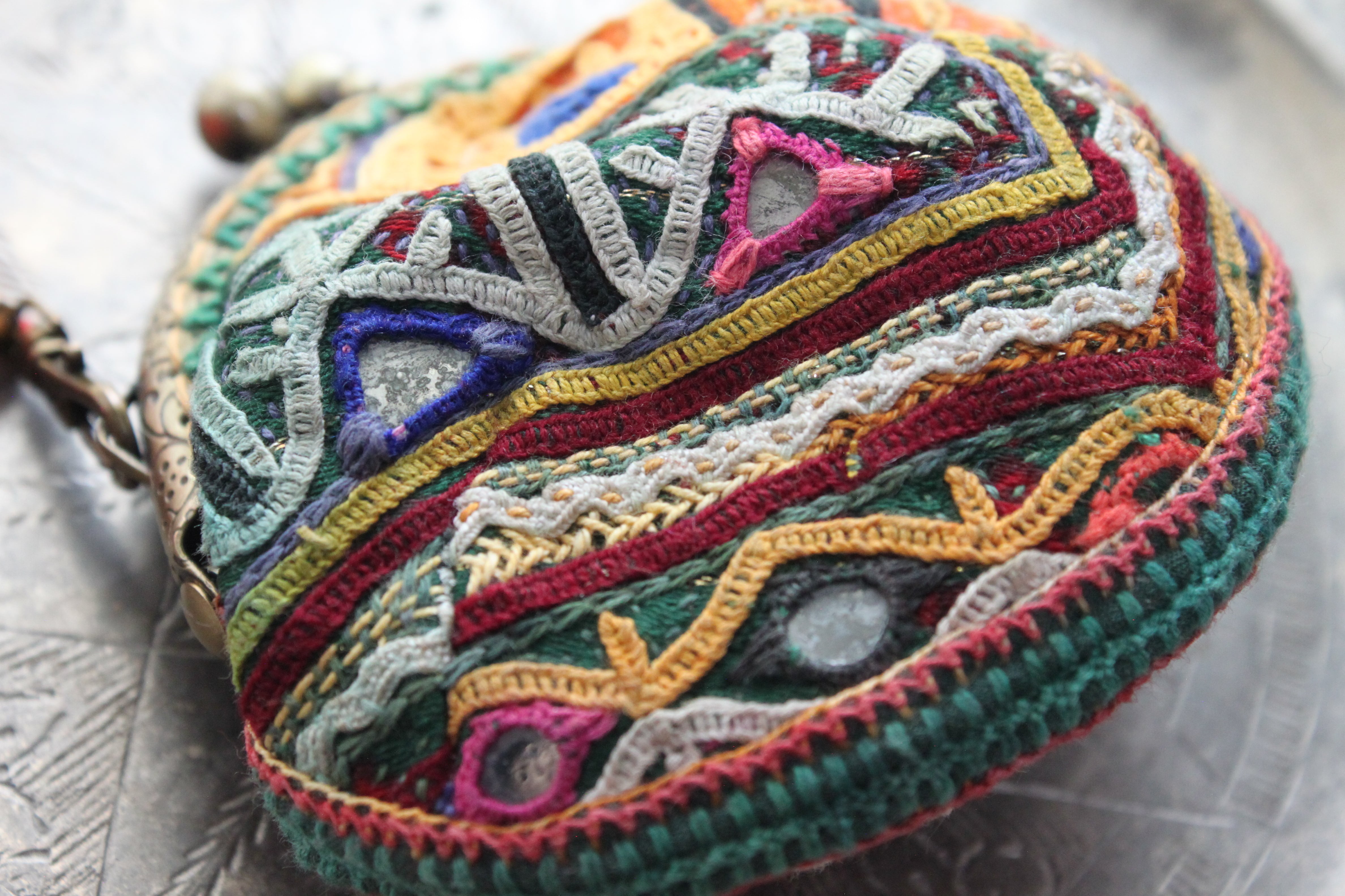 Indian embroidery coin purse/ラバリ刺繍のがま口