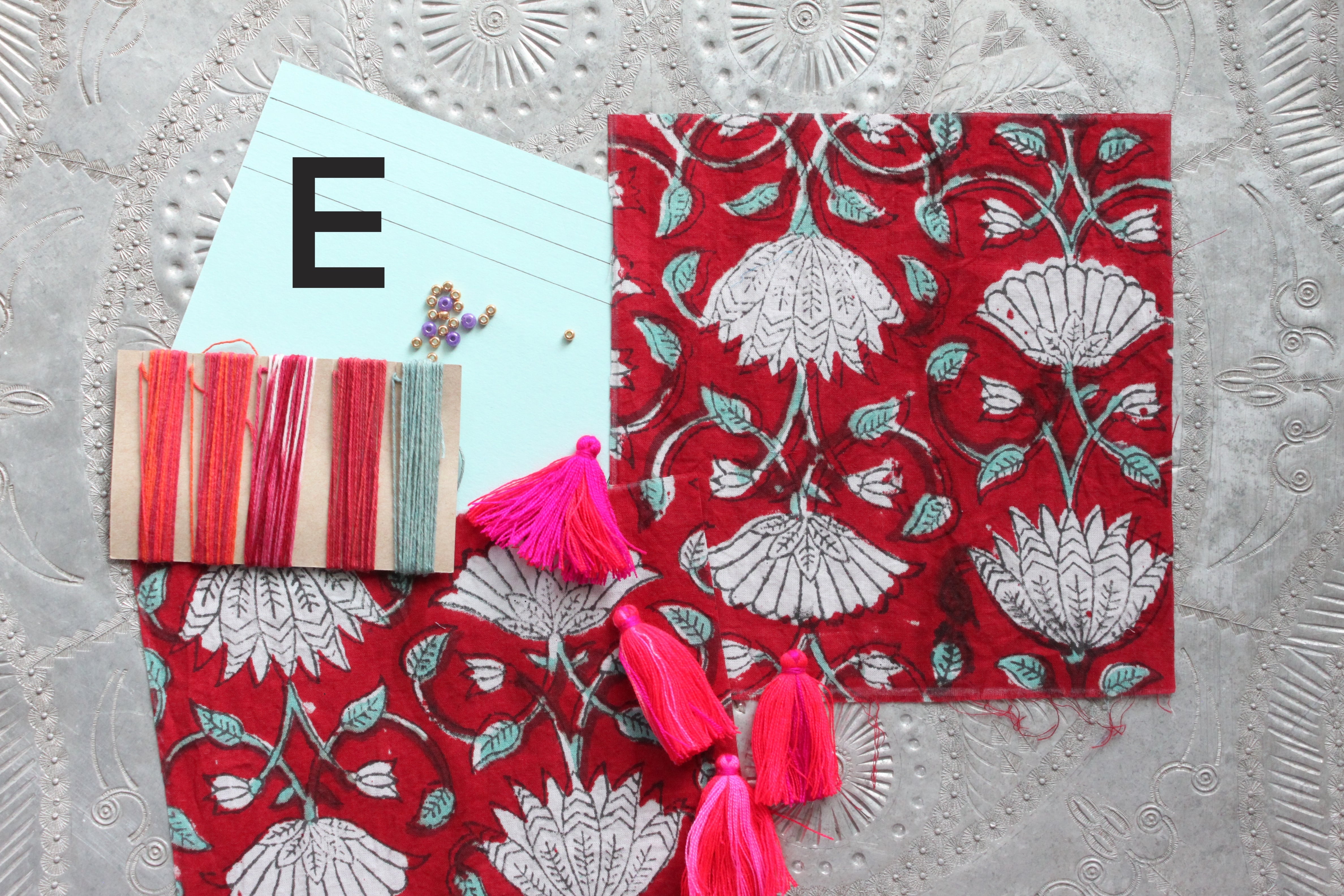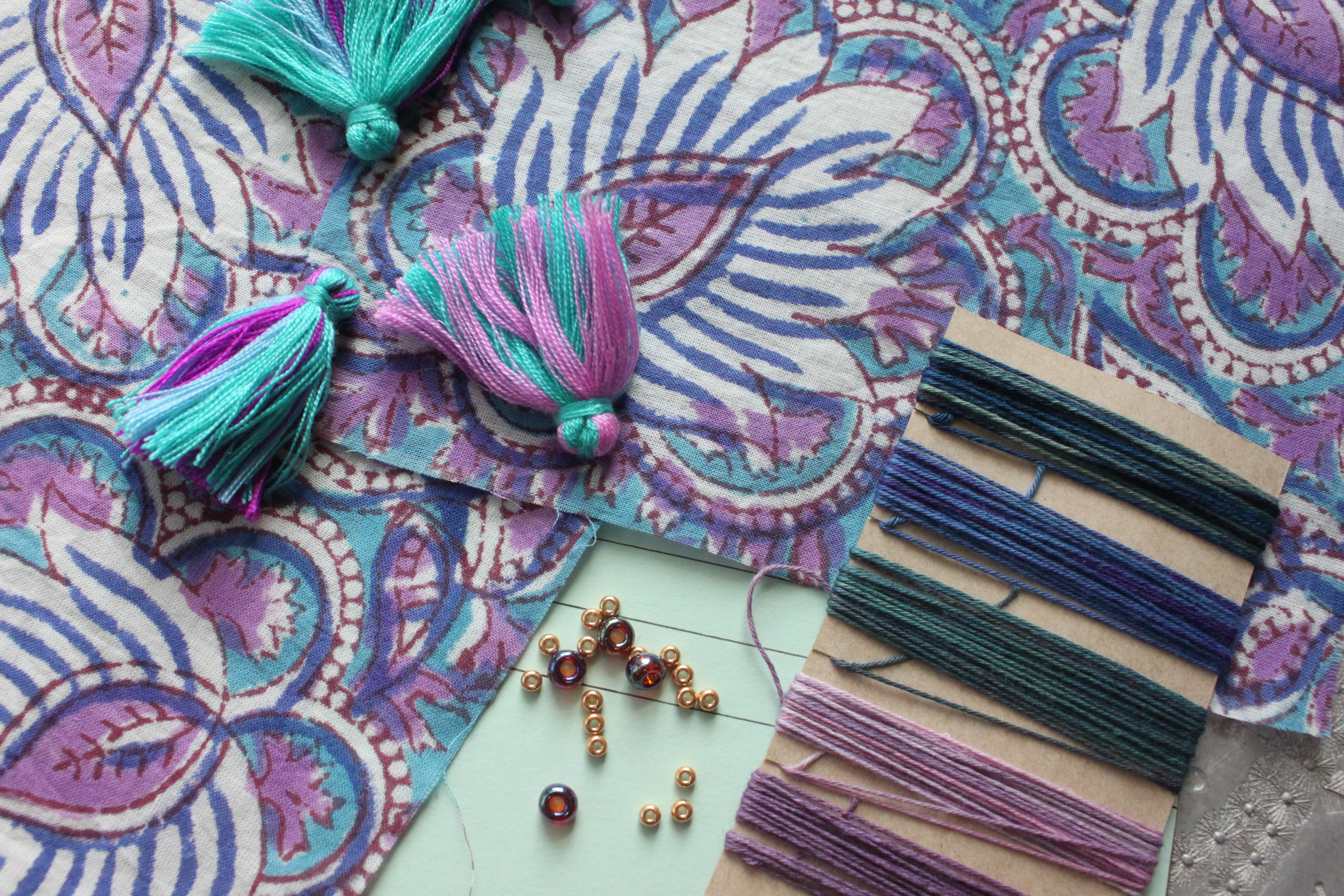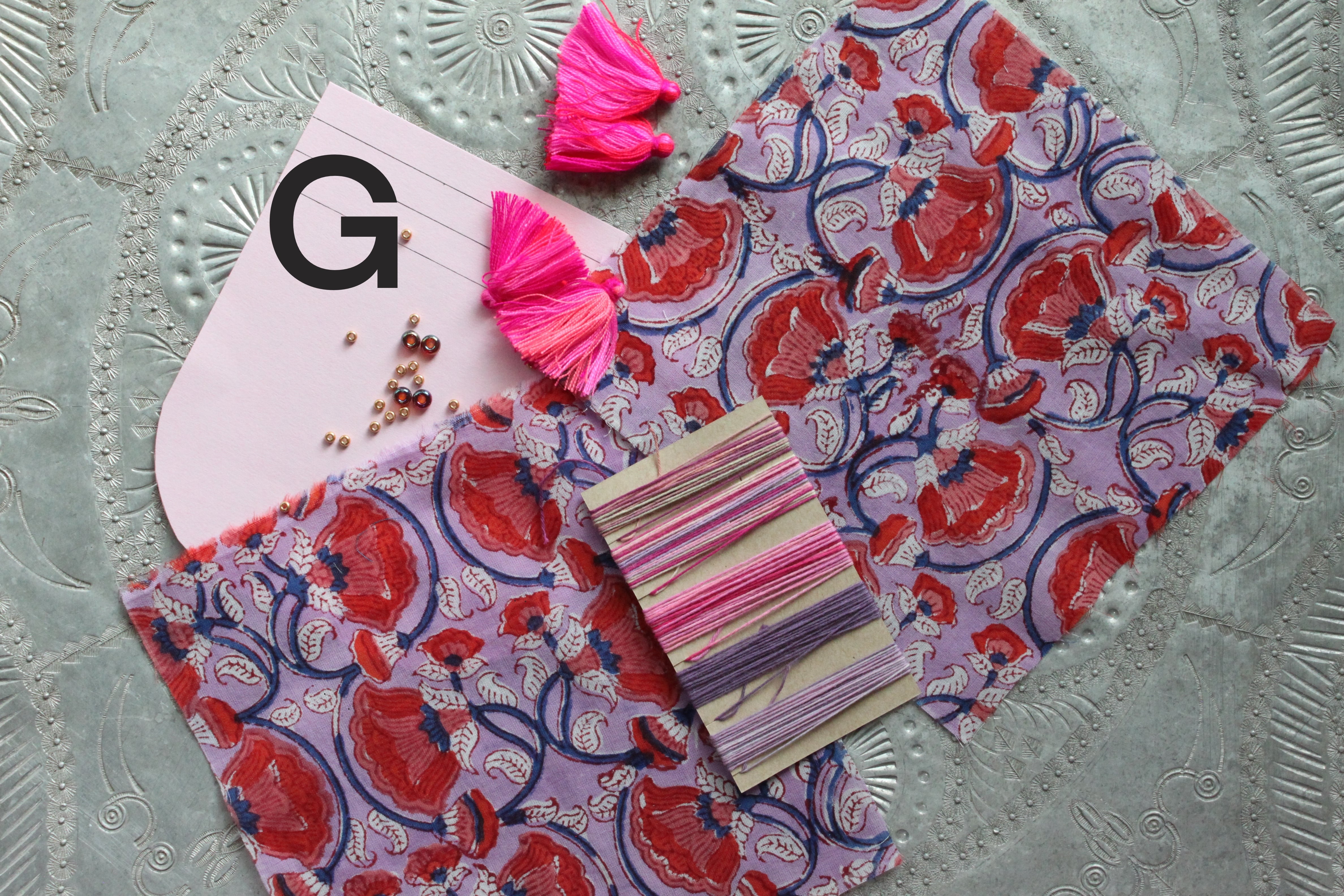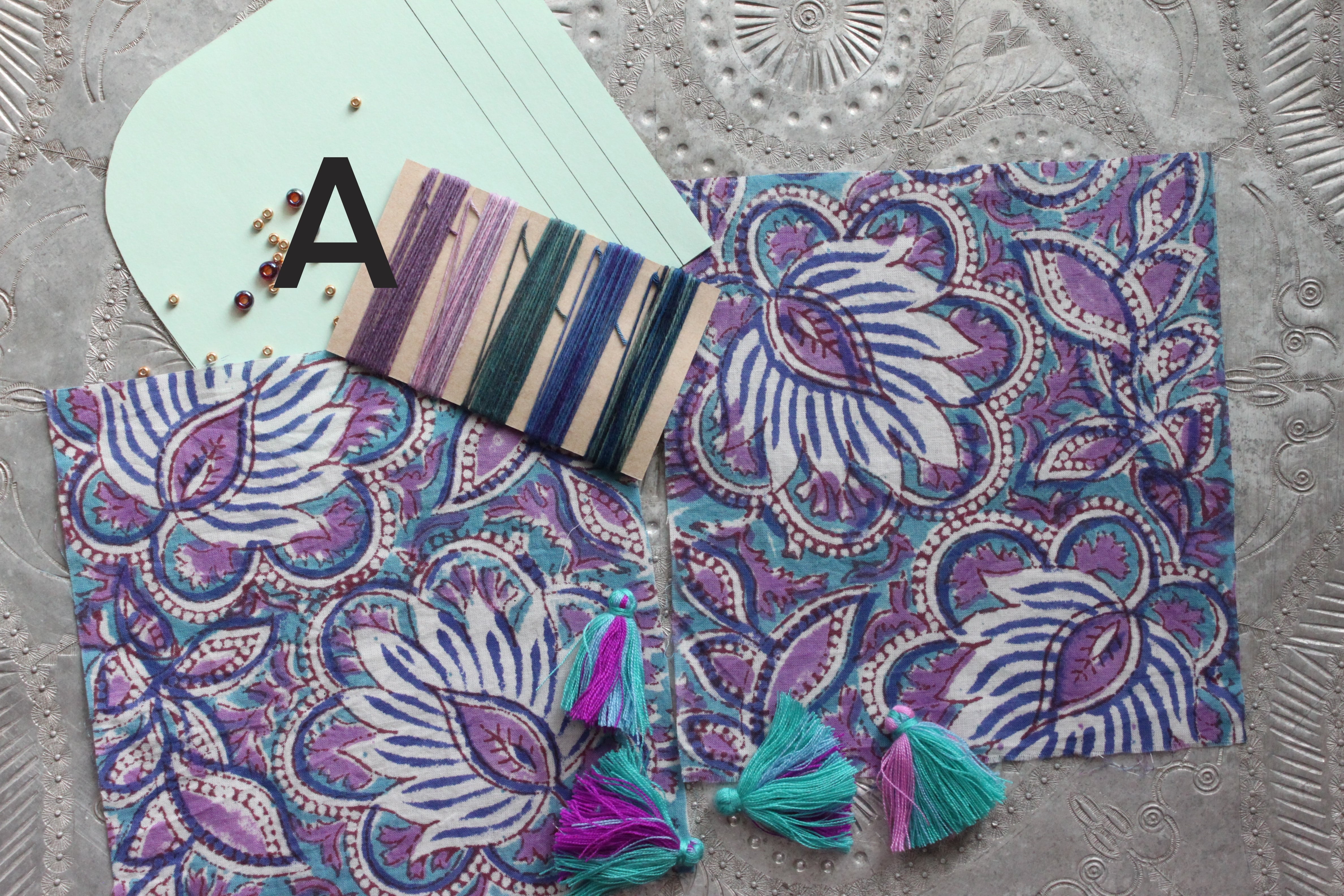 インドのブロックプリント生地を使用した手縫で作る巾着袋の制作キットです。