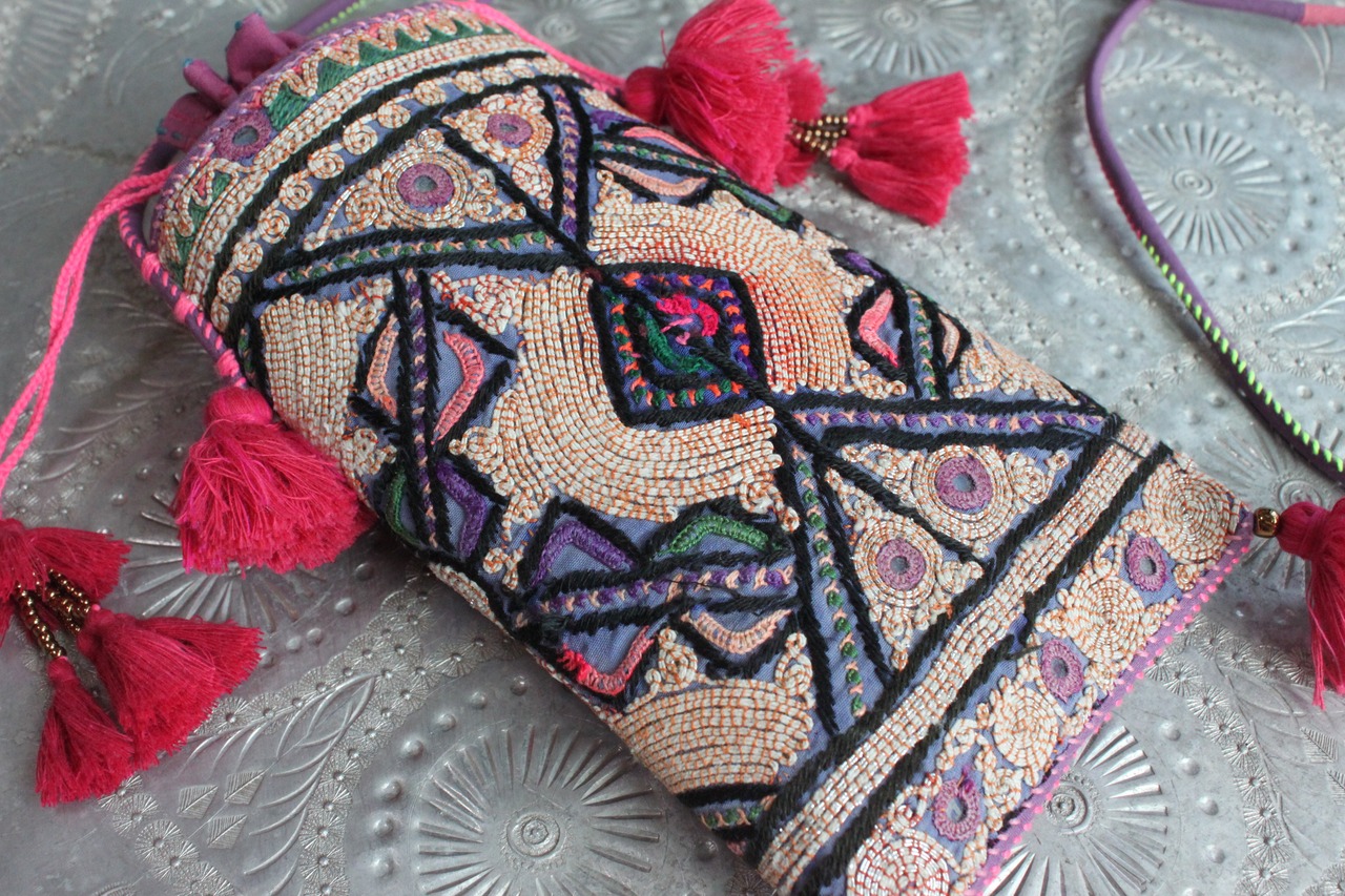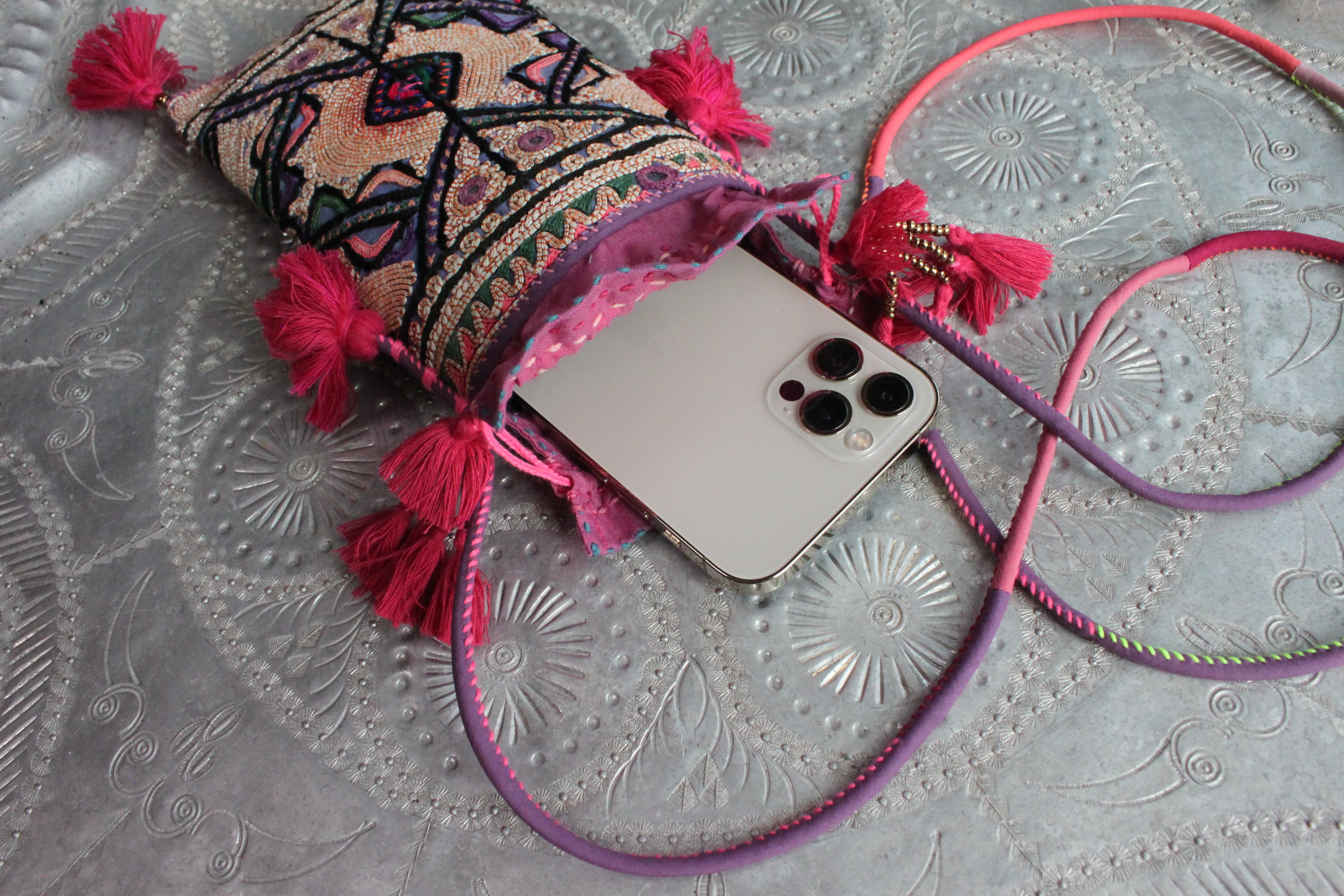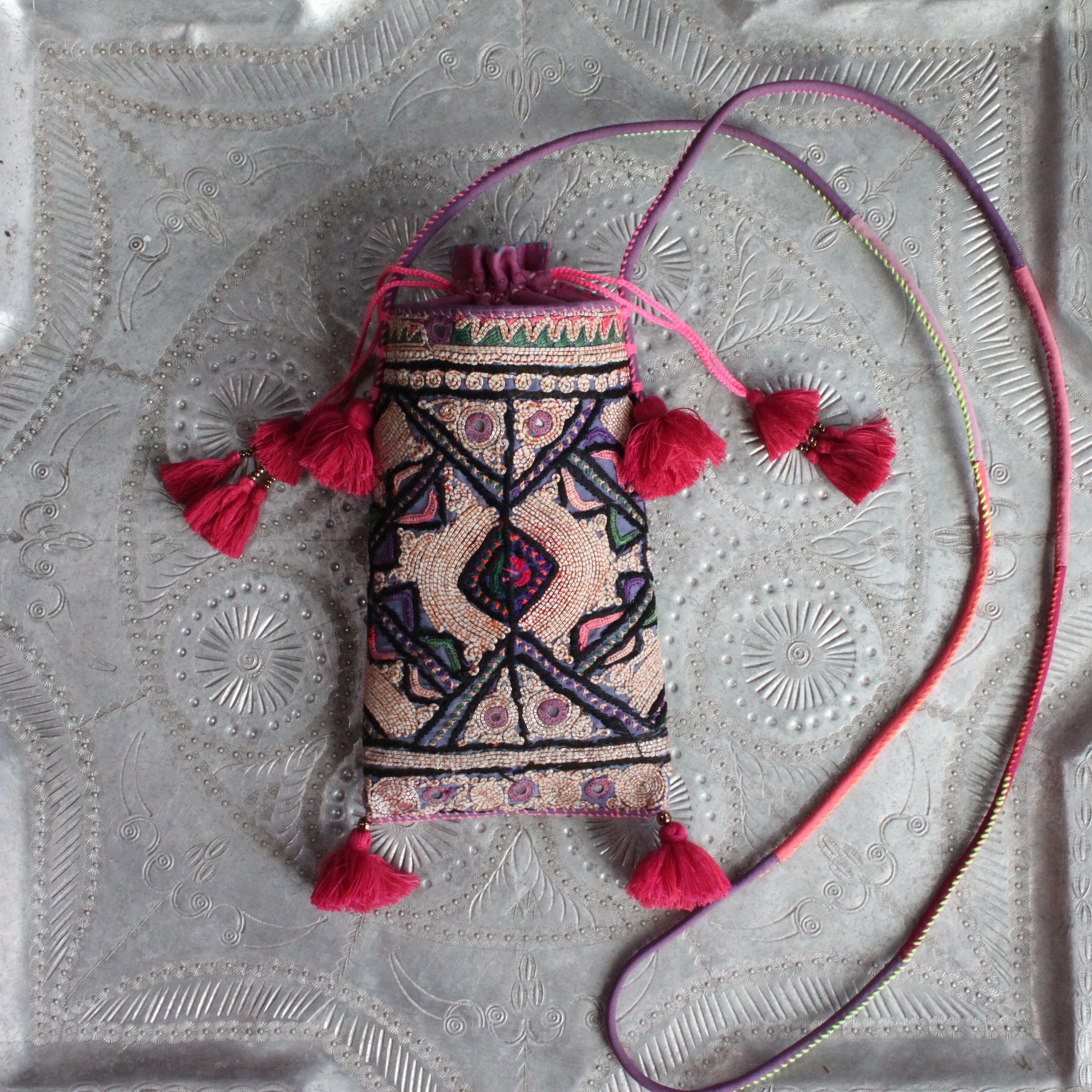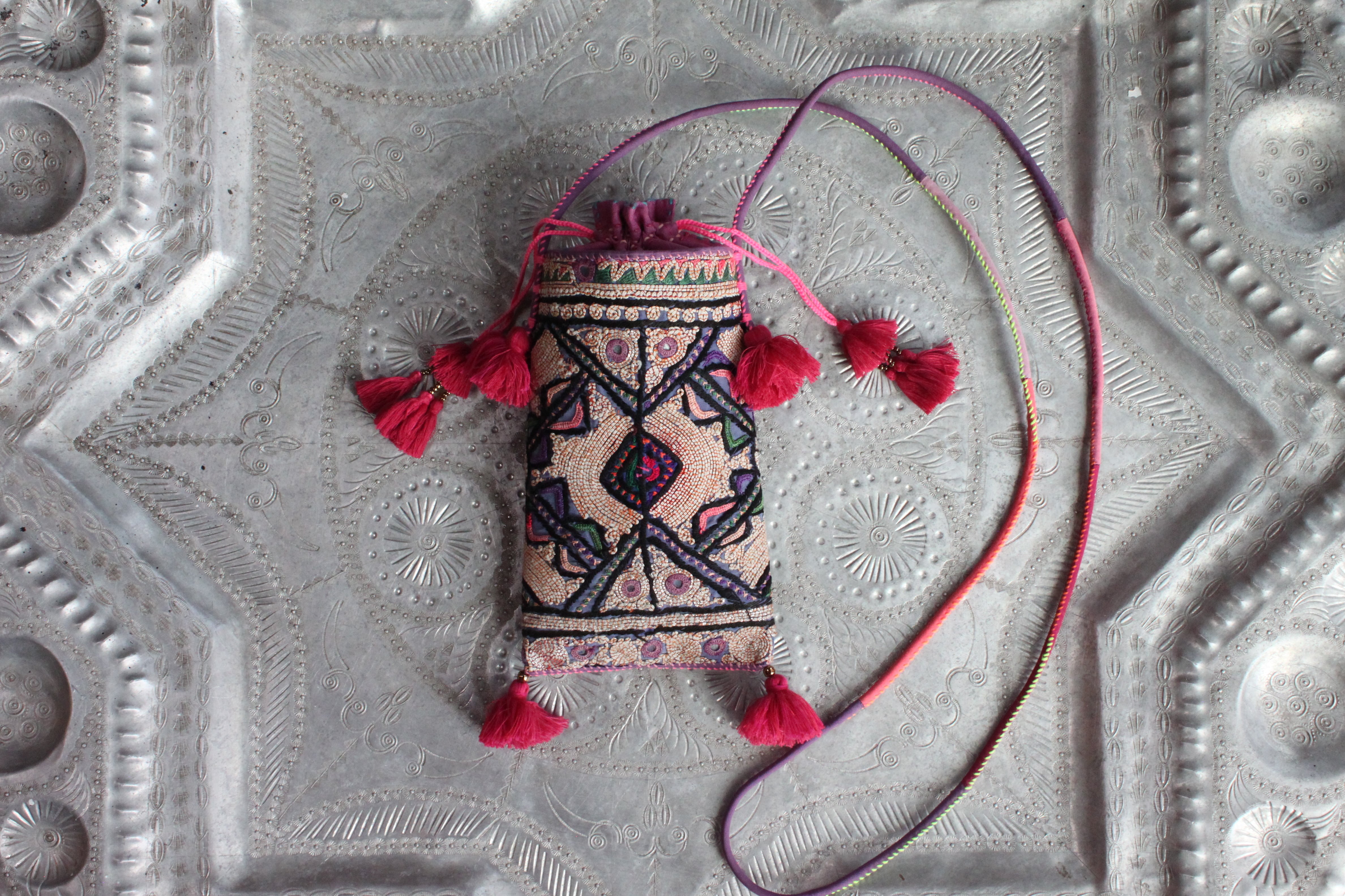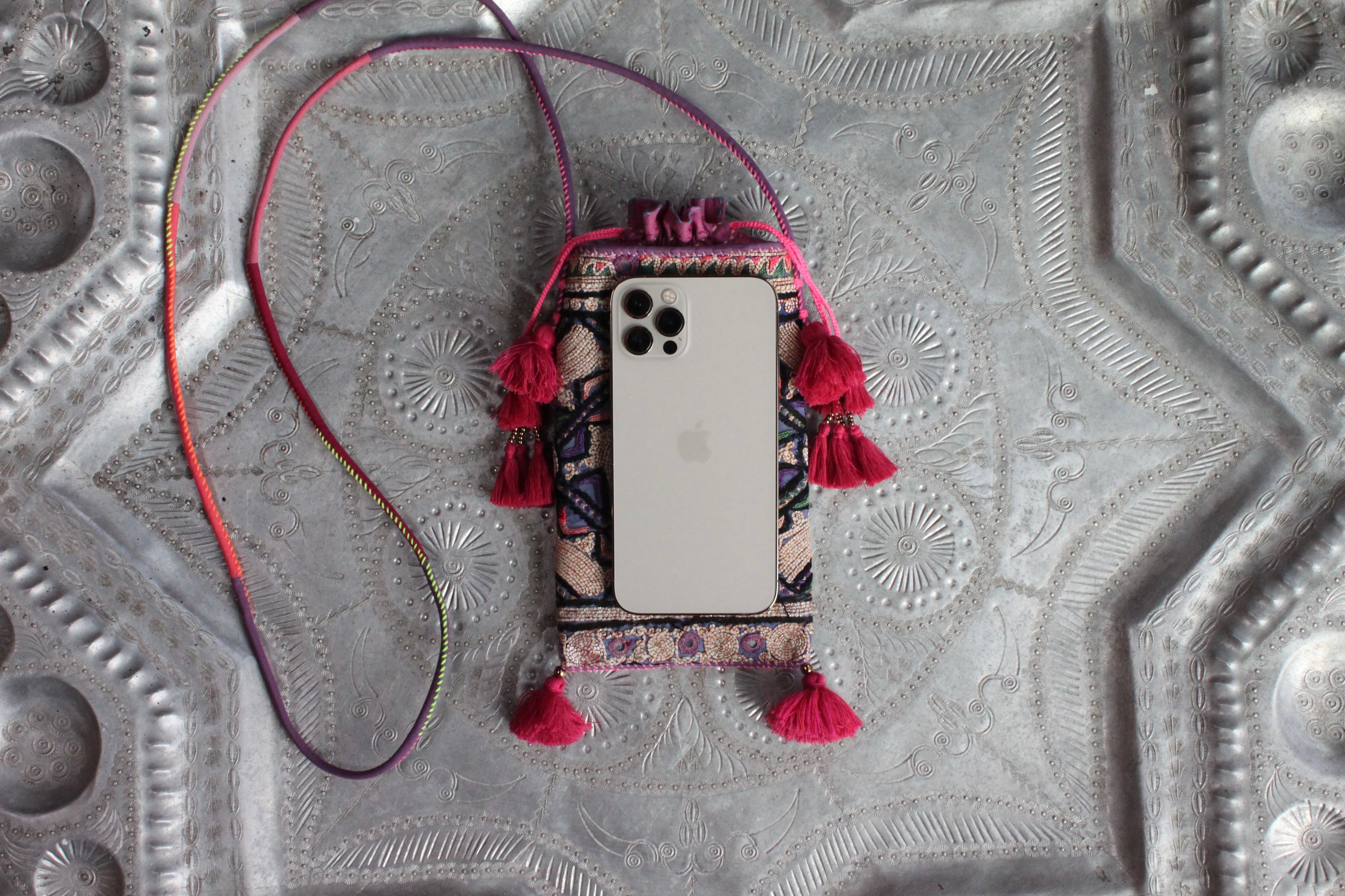 インドの民族衣装の刺繍部分を贅沢に使った肩掛けスマホショルダー。