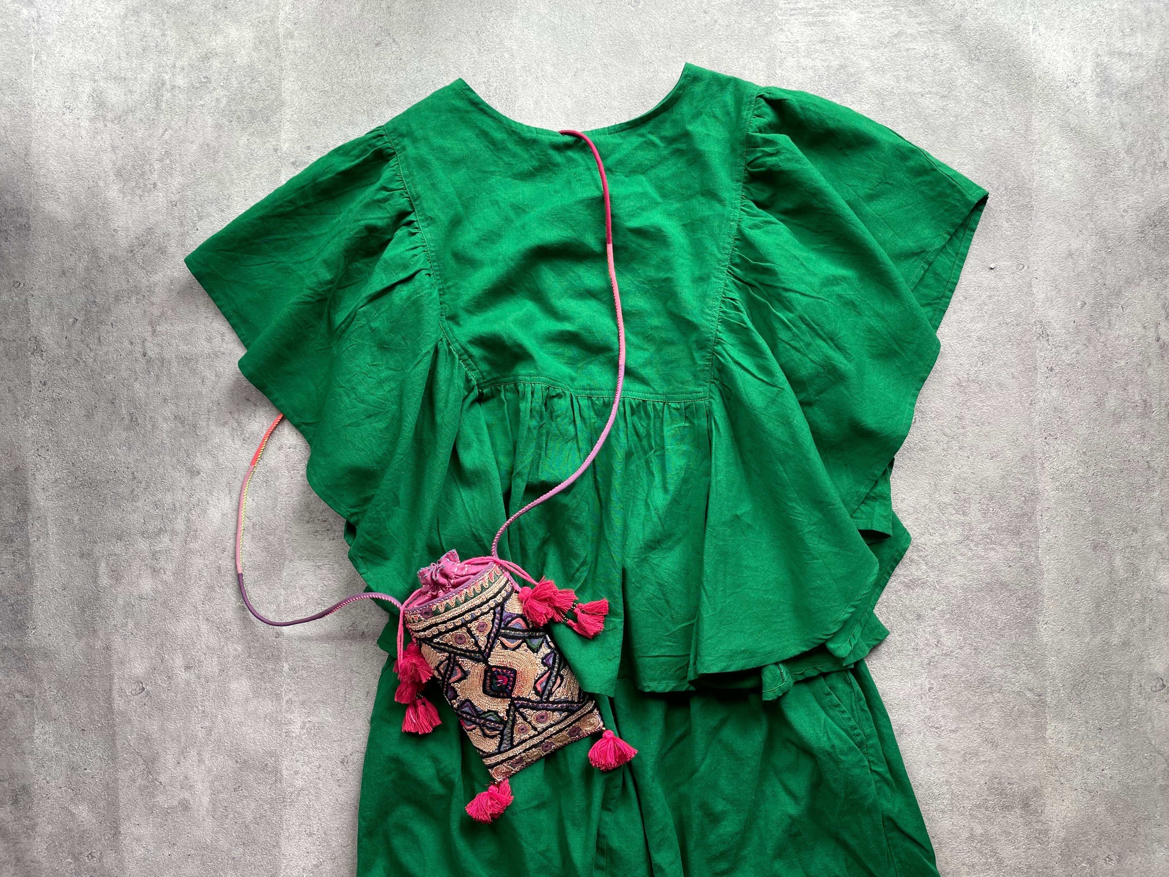 インドとパキスタンの国境付近で暮らしている女性たちの民族衣装をリメイクしたものです。