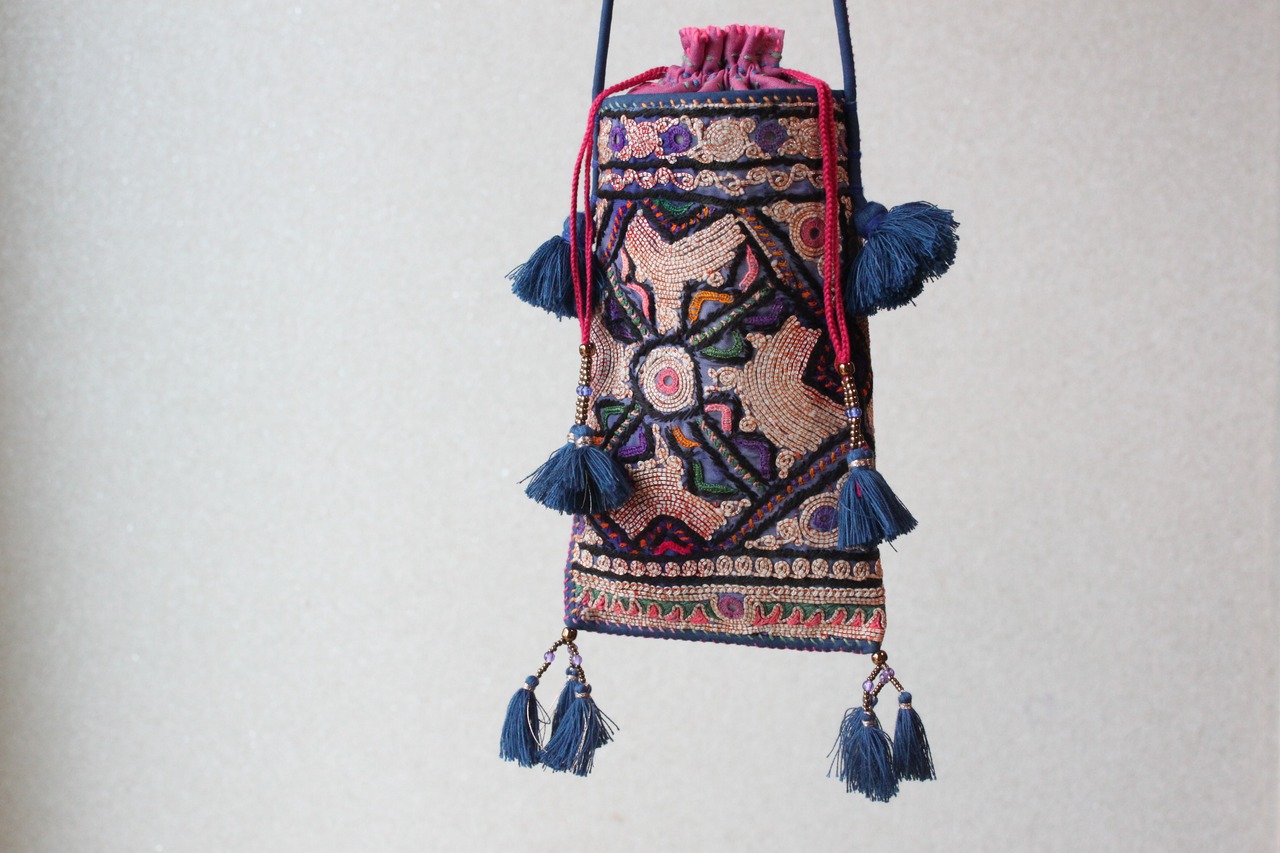 インドの民族衣装の刺繍部分を贅沢に使った肩掛けスマホショルダー。