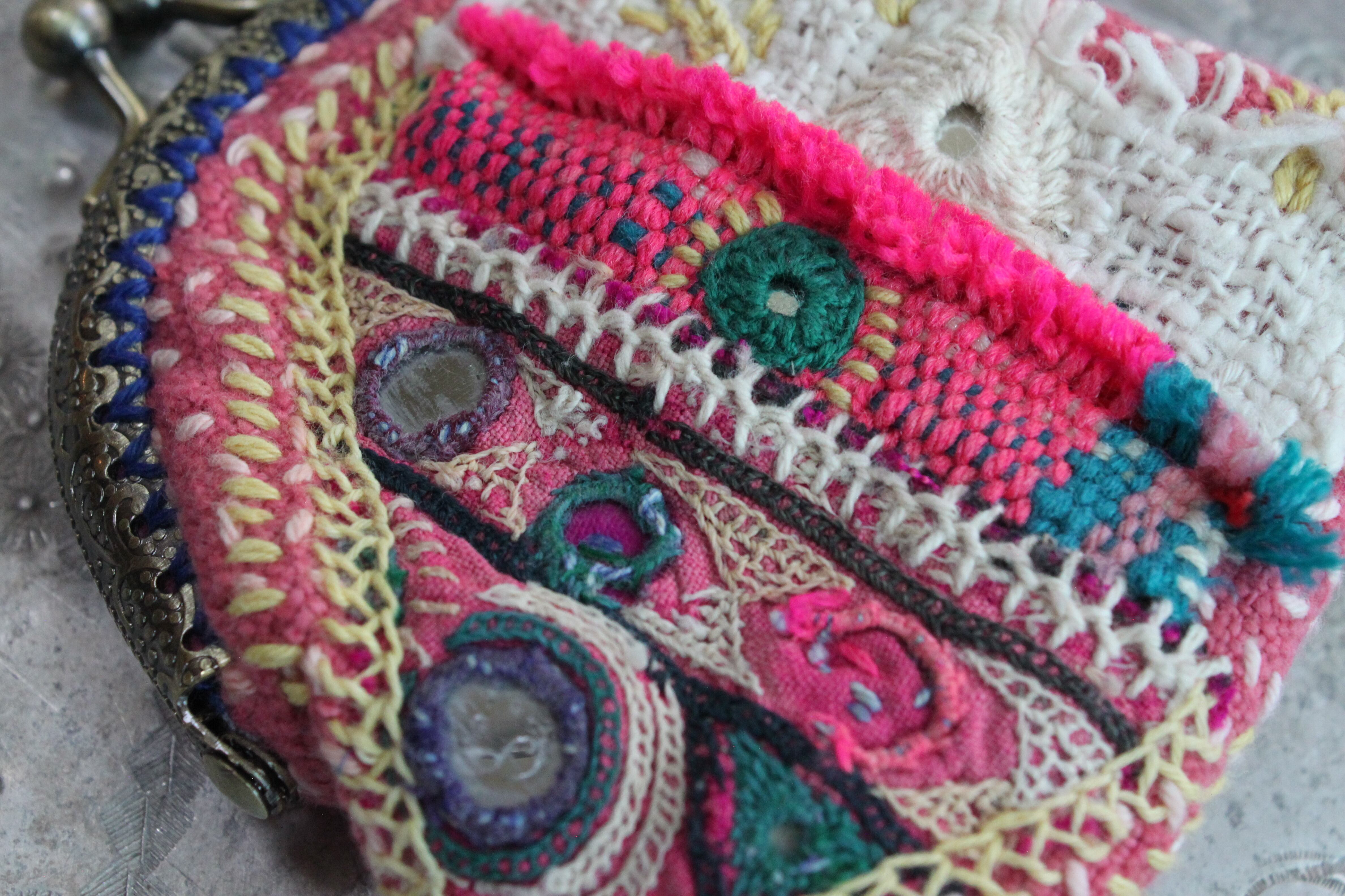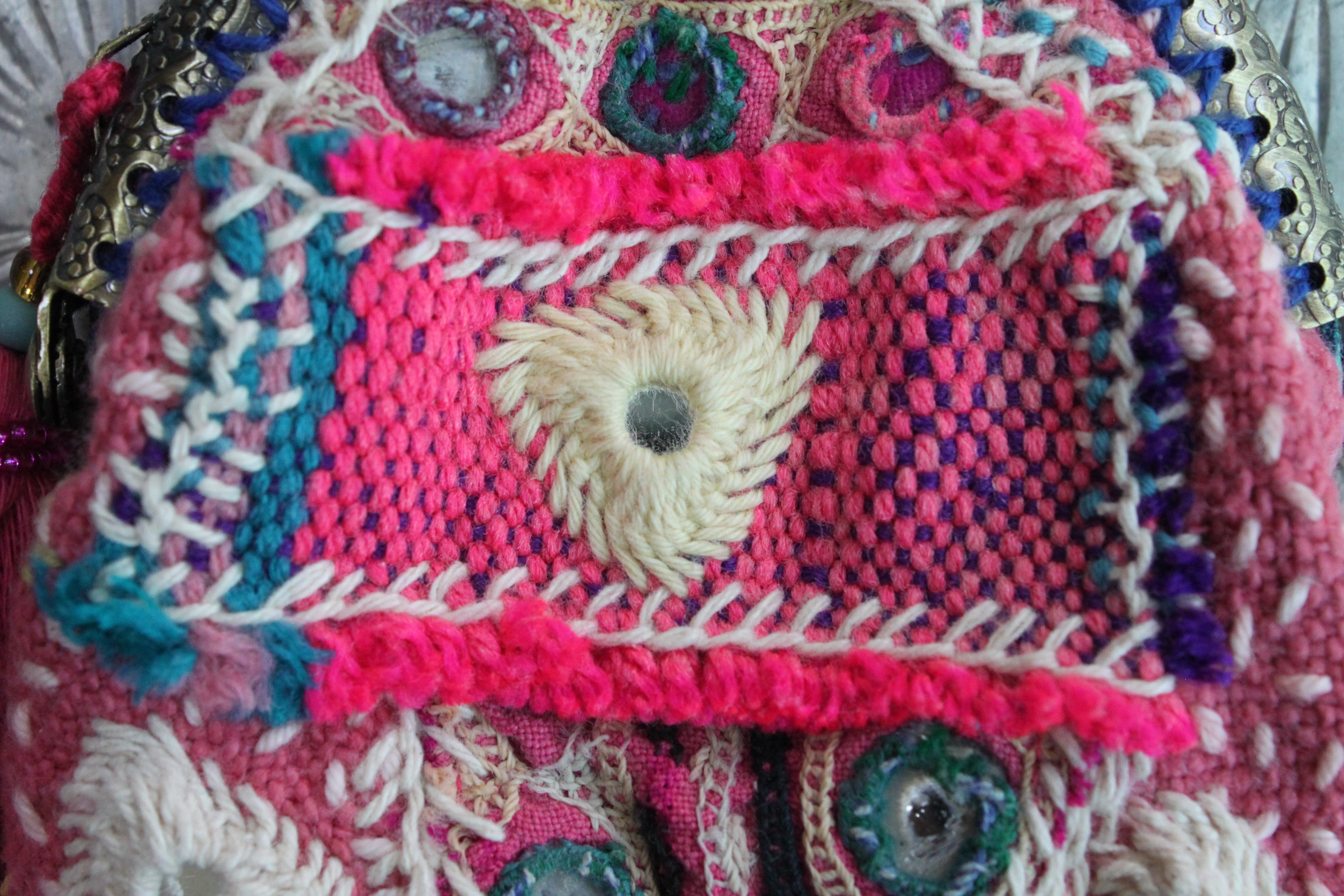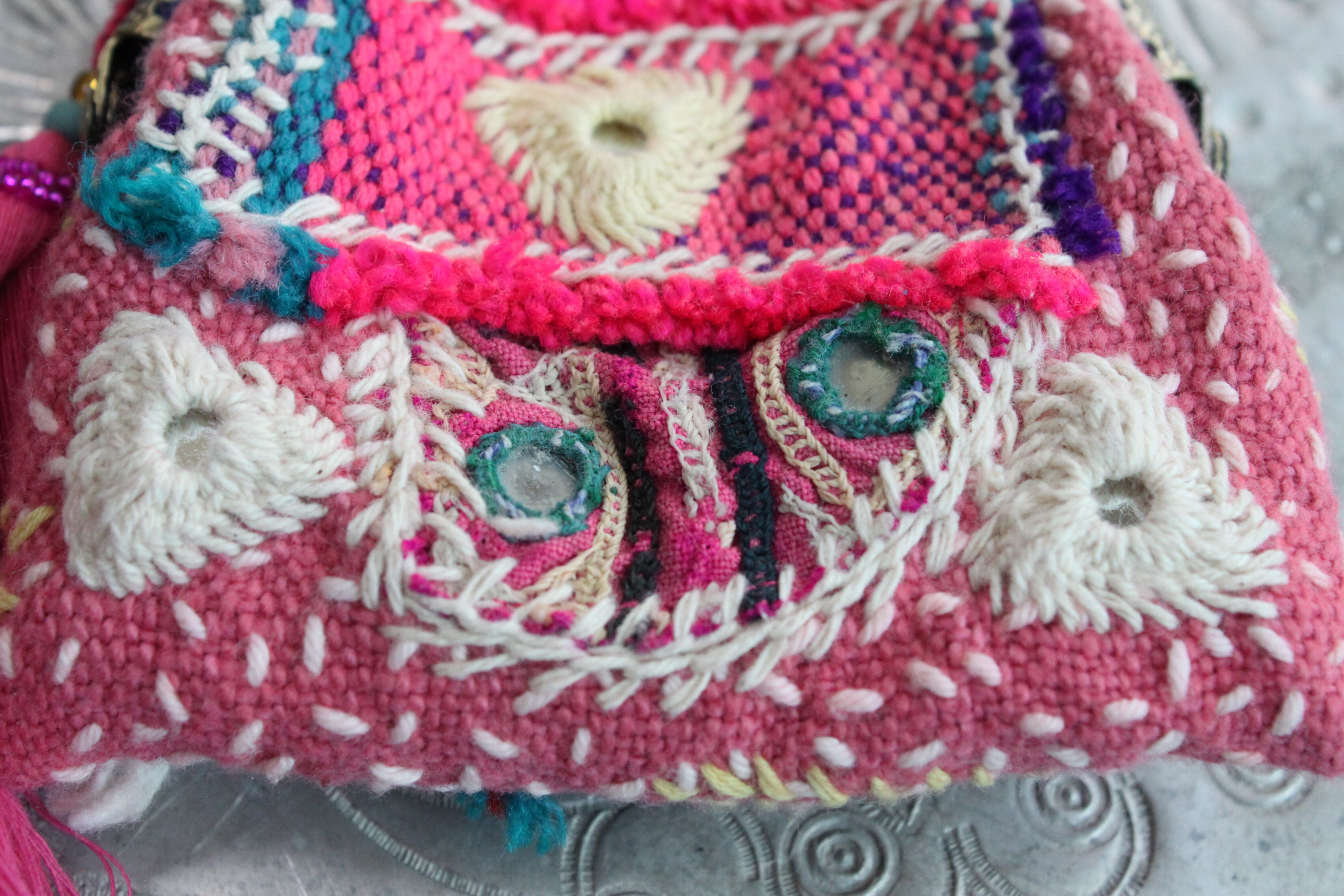 ラオスの手織りの布をベースにモロッコ、インドなどの生地を組み合わせ作った