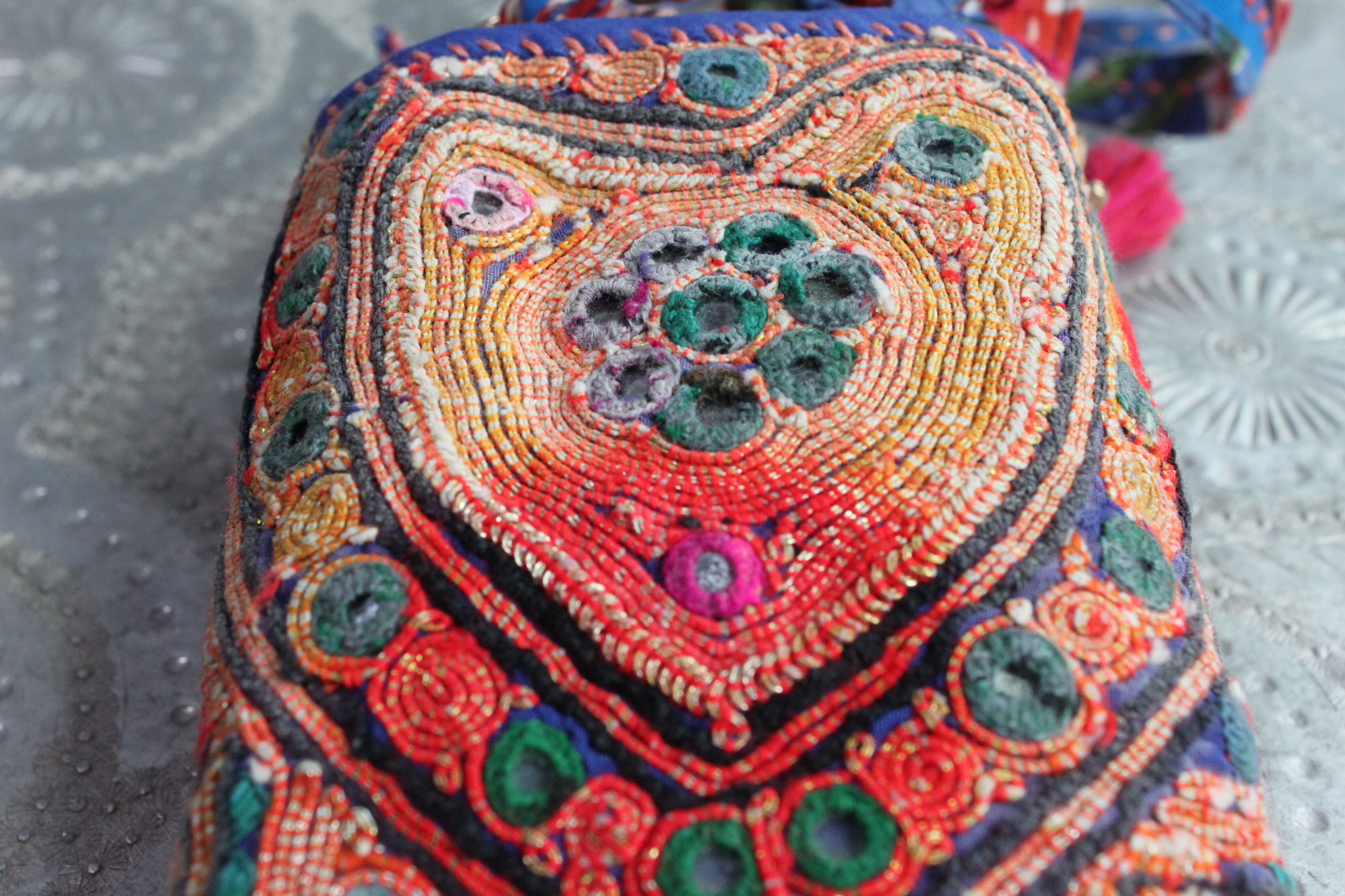 散りばめられたミラー刺繍、エキゾチックなデザインが魅力的な一点物。