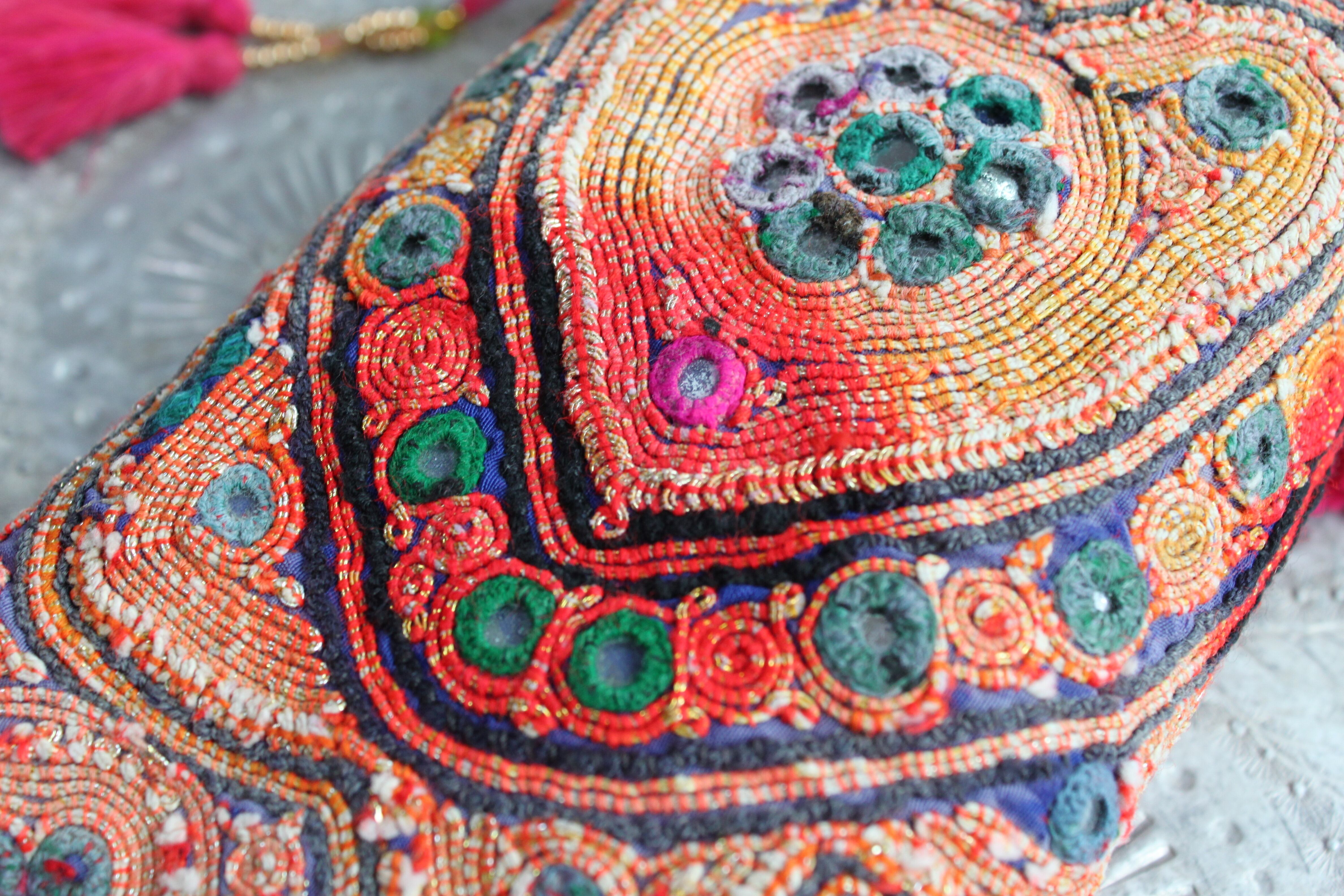 インドの民族衣装の刺繍部分を贅沢に使った肩掛けスマホショルダー。