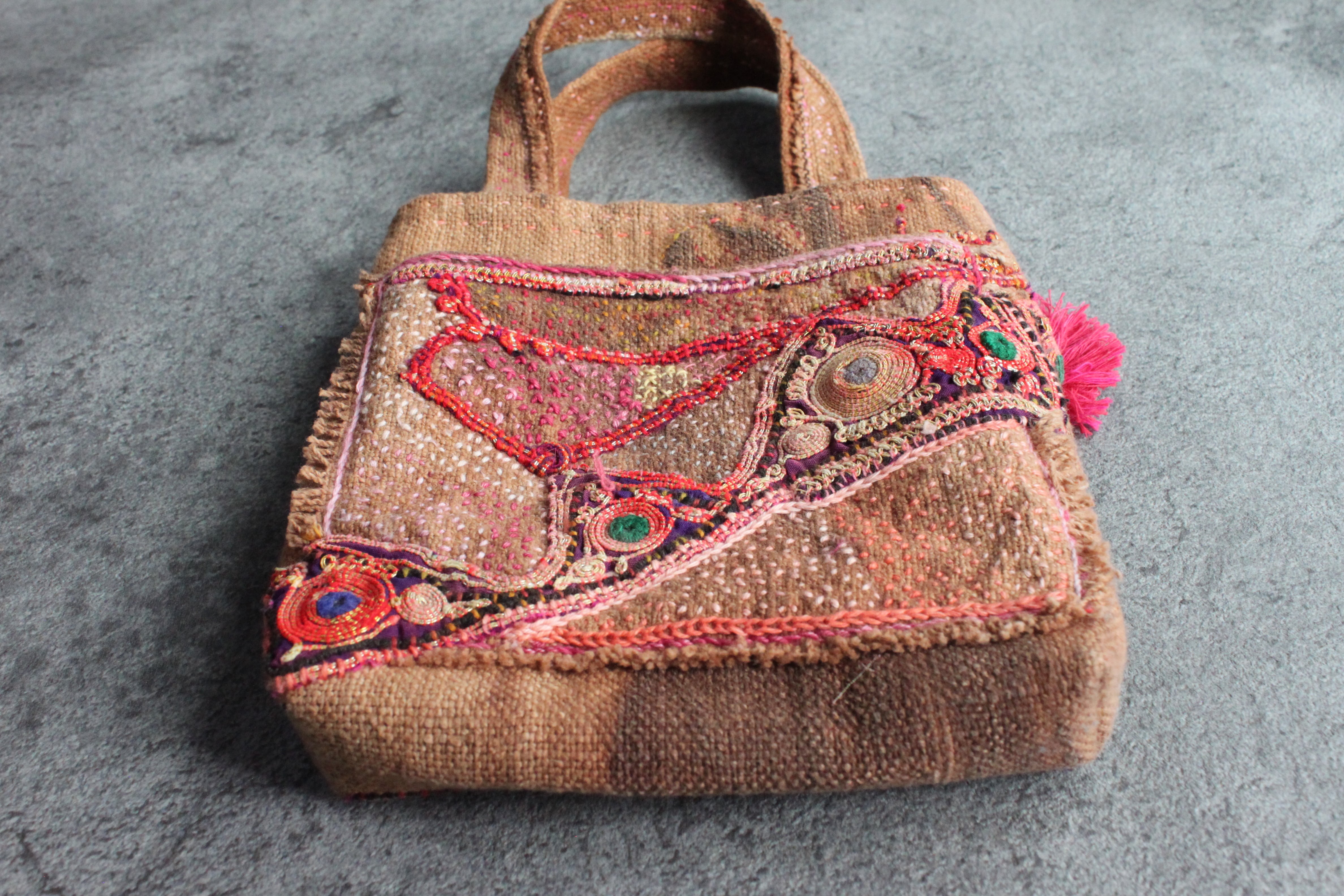縫いつけている刺繍はインドの少数民族の古い刺繍生地を使用しています。
